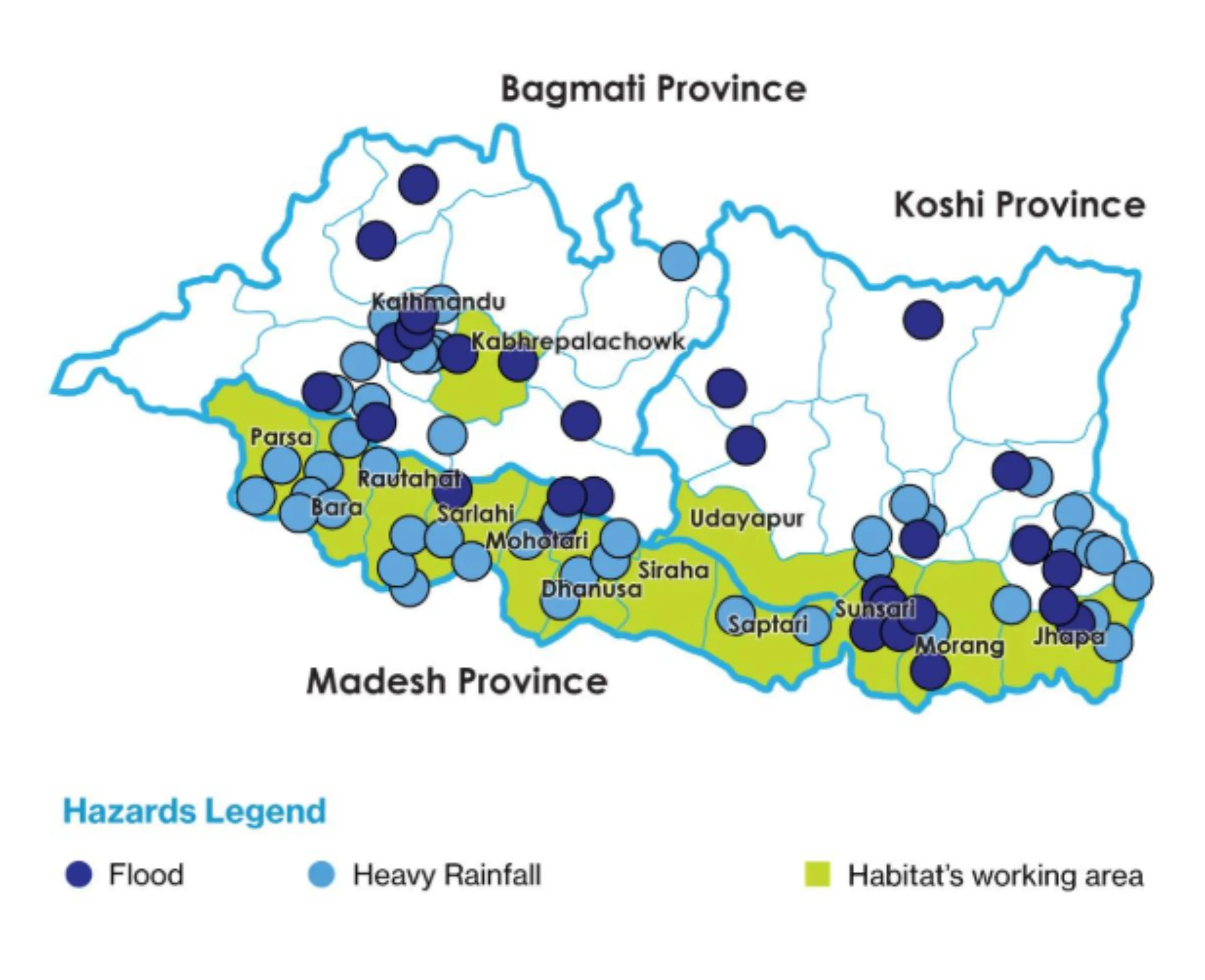 In response to the floods, Habitat for Humanity Nepal activated its Emergency Response Coordination team to lead the response and ensure coordination with government authorities and organisations. Habitat Nepal has a strong presence across the lower Terai belt in Madesh and Koshi Provinces, where majority of the destruction from these floods is concentrated.