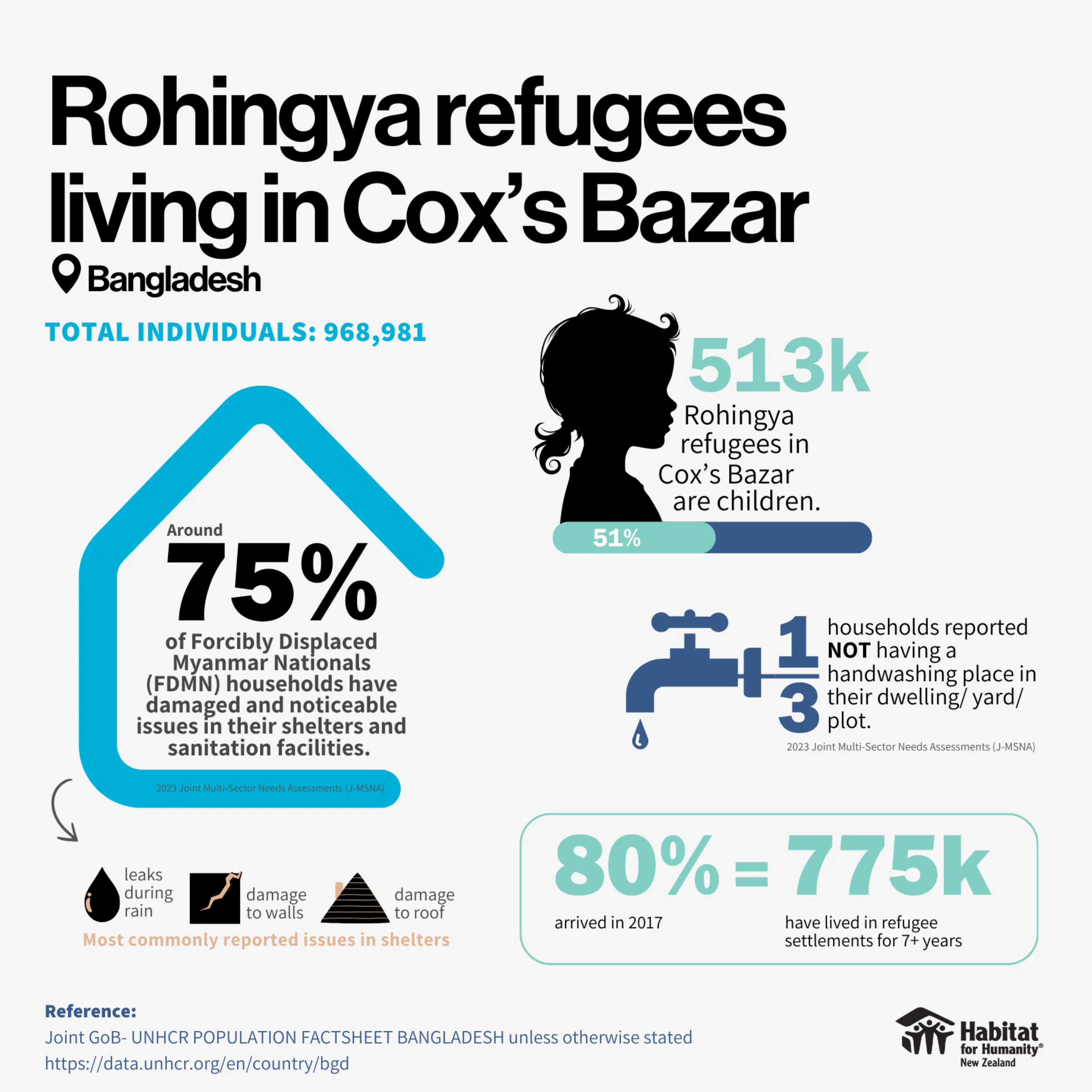 Organisations like Habitat are working in the camps to repair and improve shelters, water access, sanitation, and overall living conditions for Rohingya in Cox’s Bazar.