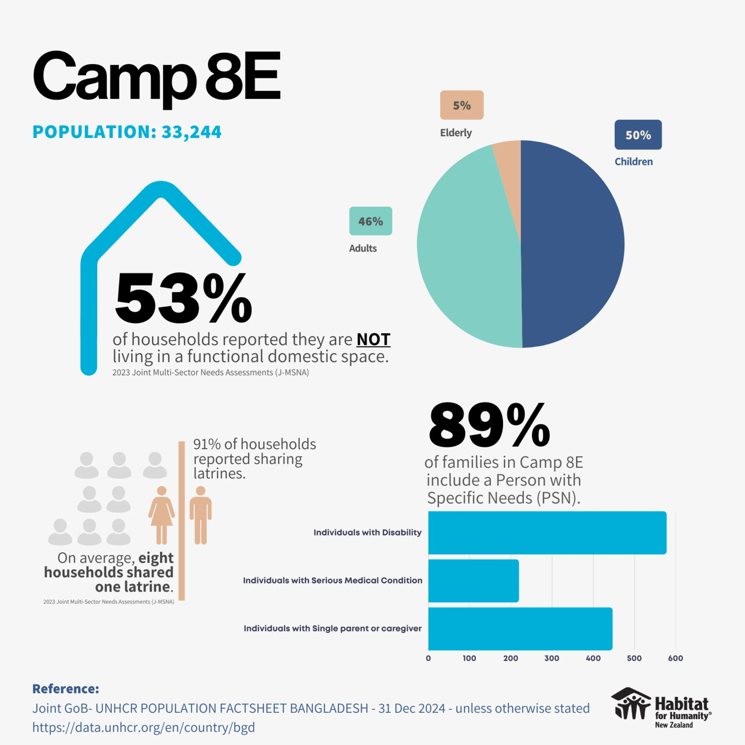 Although people may think of refugee camps as short-term situations until displaced people move on, the reality is quite different. In fact, in December 2024 it was reported that 80% of current refugees in Cox’s Bazar arrived in 2017, meaning hundreds of thousands of women, children, and families have now lived in a camp for almost eight years, according to the Population Fact Sheet published by the Joint Government of Bangladesh (GoB) and the United Nations Refugee Agency (UNHCR).